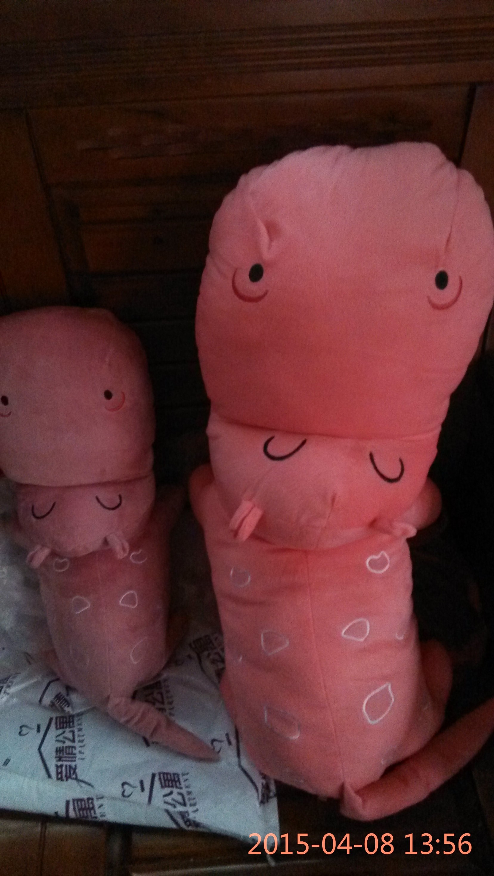 今天,2015年4月8日,收到了来自四川的“大白”给我送来了两只大河马公仔礼物,萌萌哒。特此感谢,永远铭记。